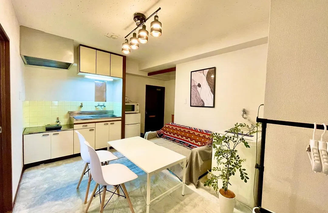 鶯谷 3寝室4ベッド 最上階 鶯谷駅徒歩2分 浅草上野秋葉原エリアアパートには必要な家電製品がすべて揃った台所があります。 このアパートからShitaya-nichomeバス停まではかなり近くで、地下鉄 入谷駅からわずか450メートルです。